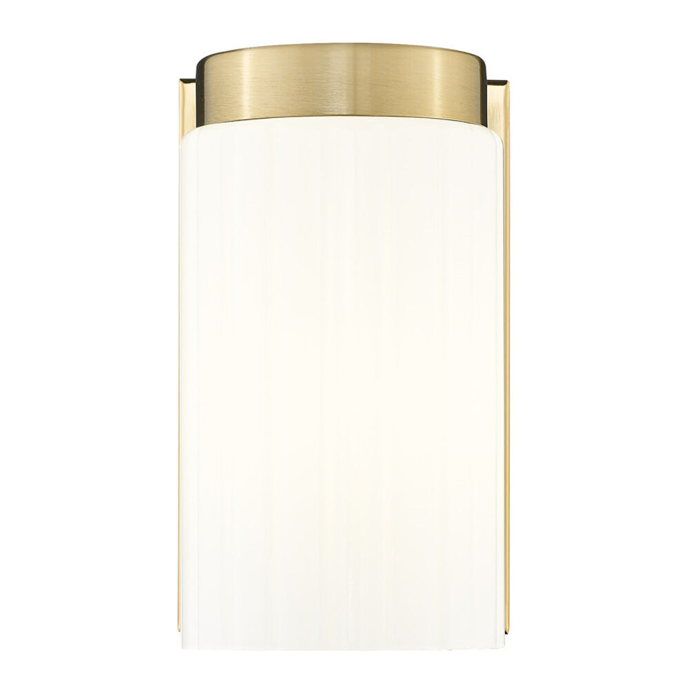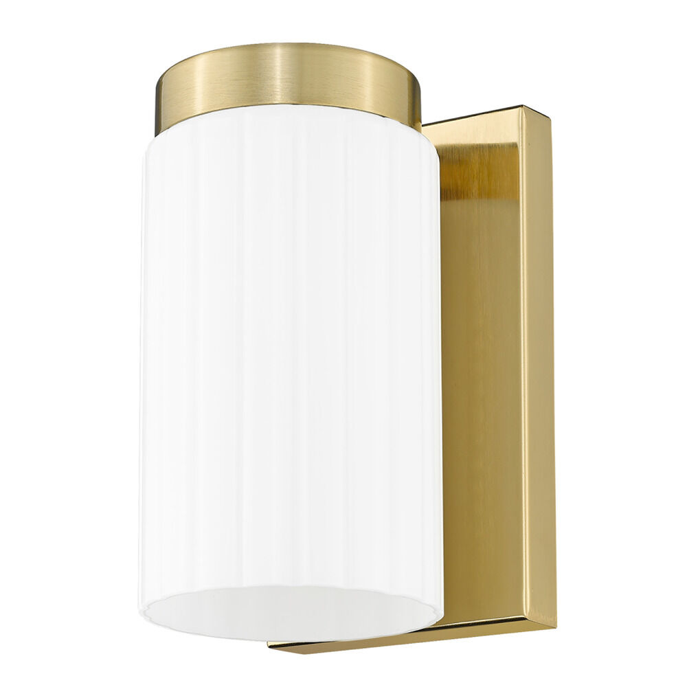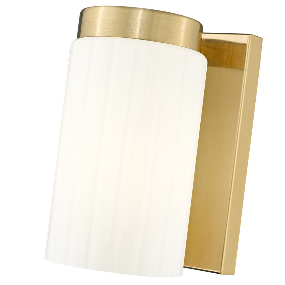 Contemporary / modern luxe gold 1-light sconce with matte,fluted matte opal glass shade