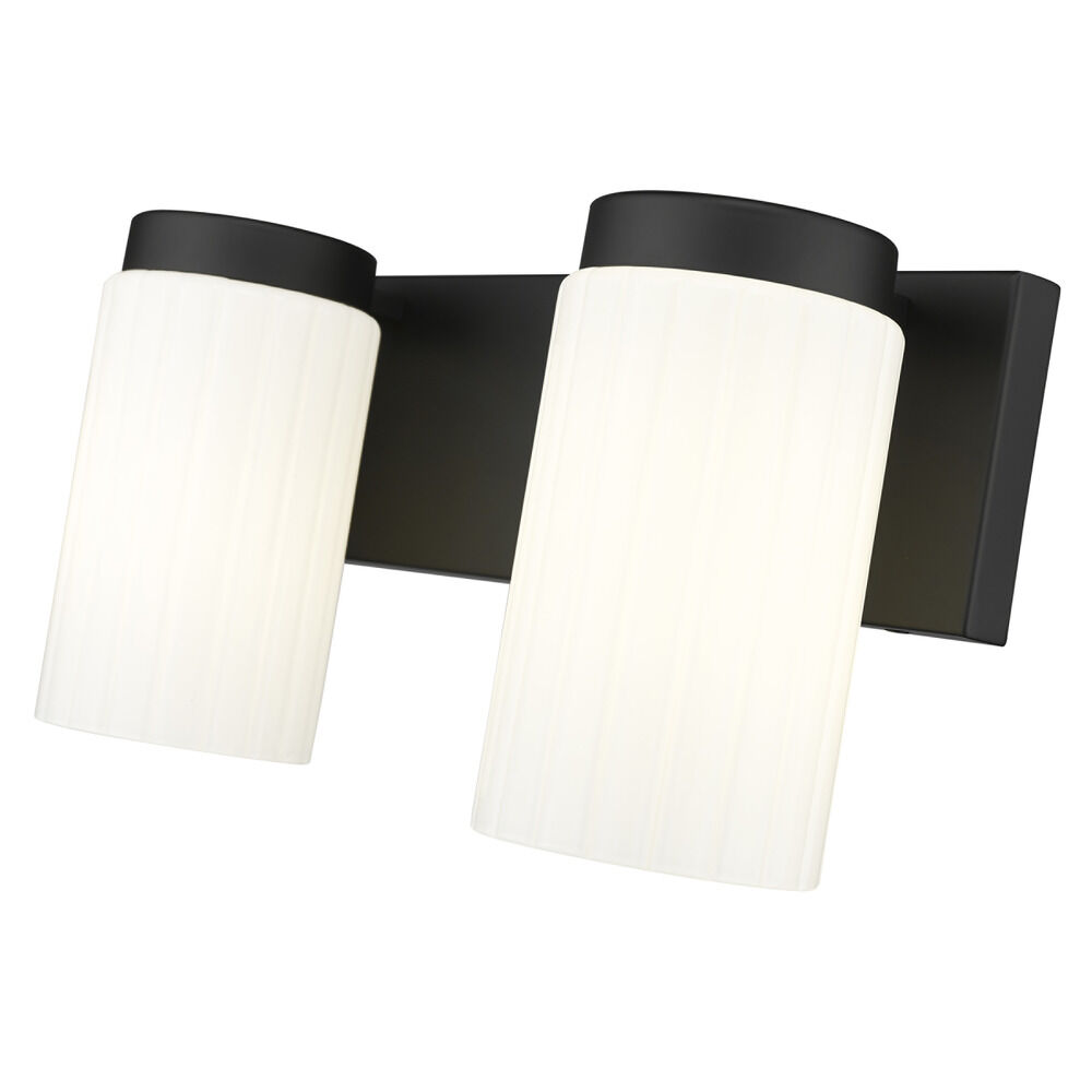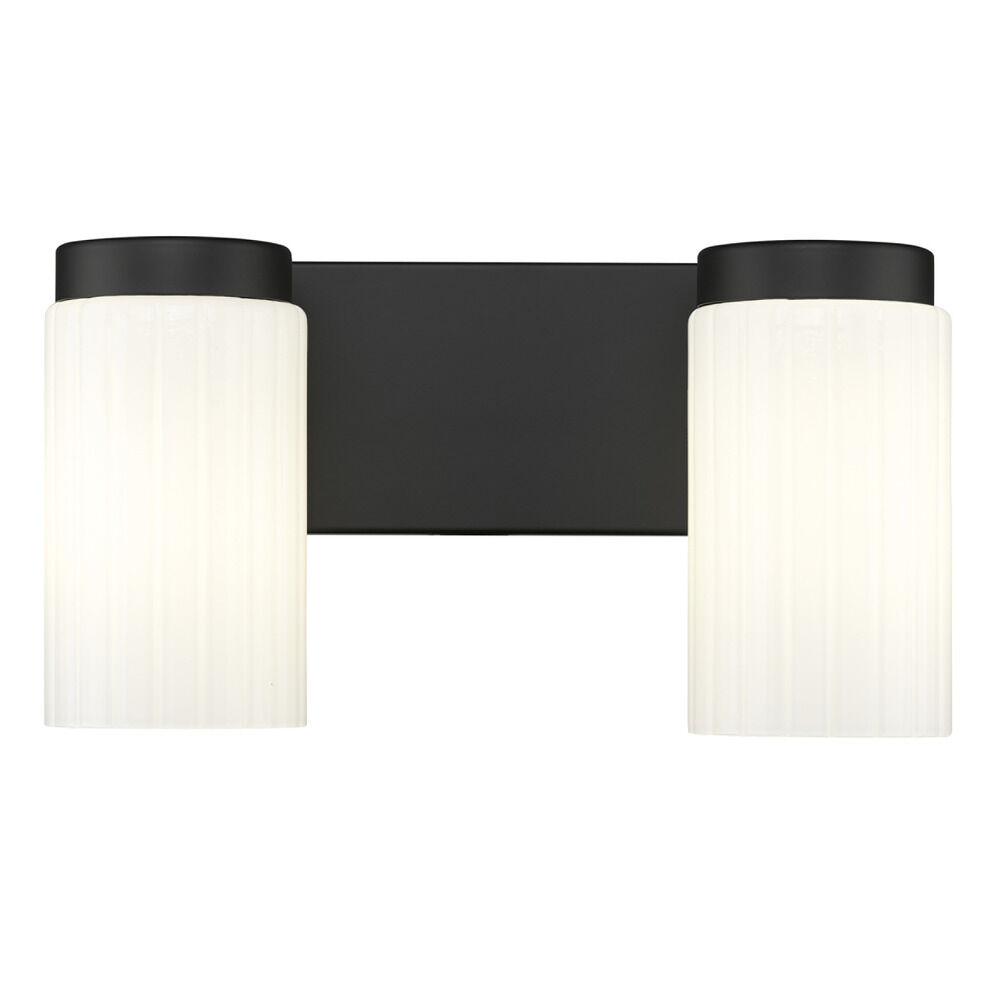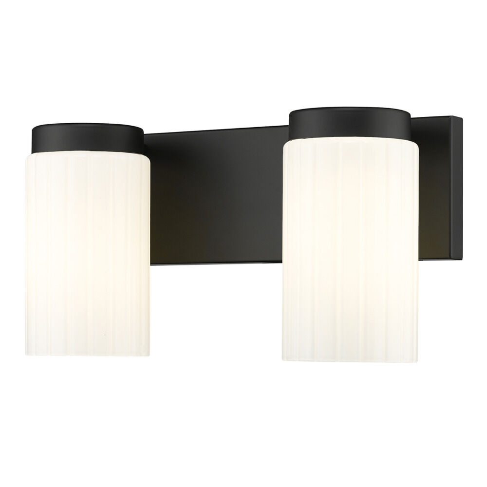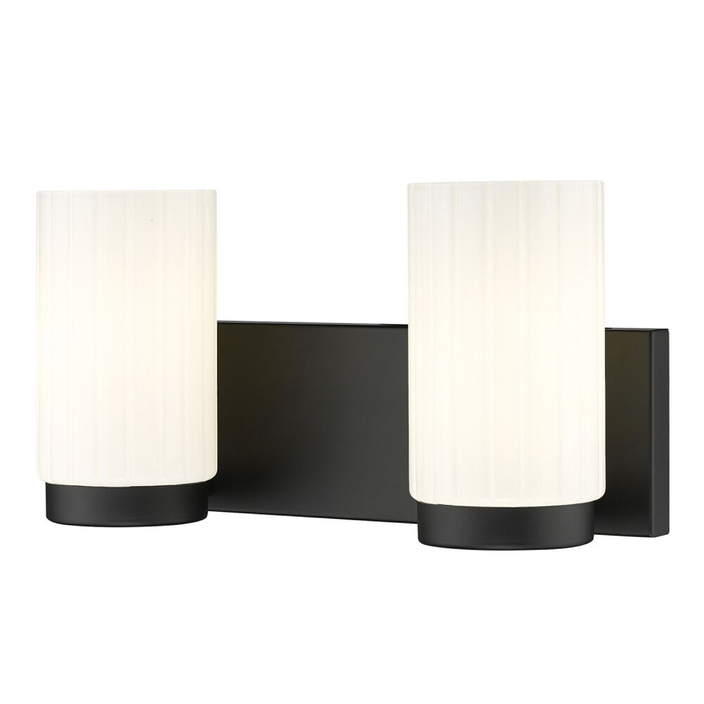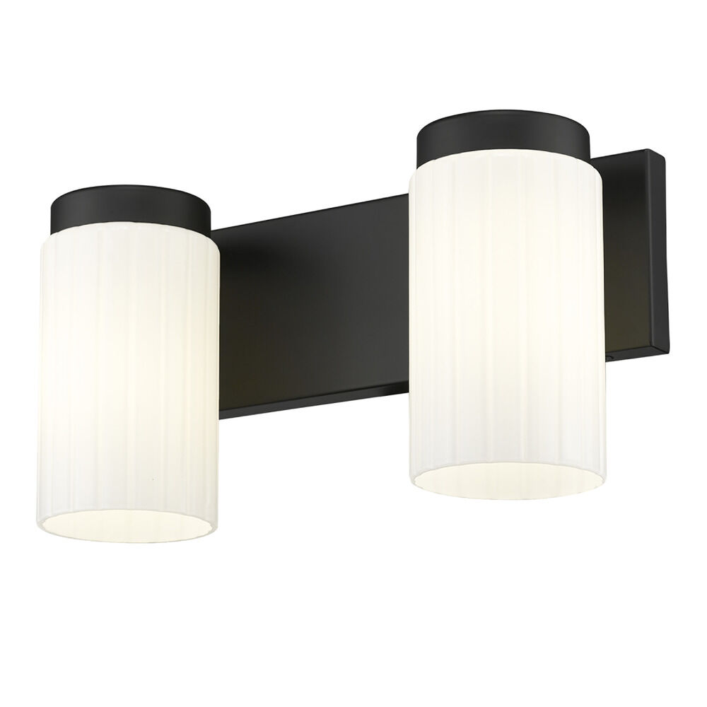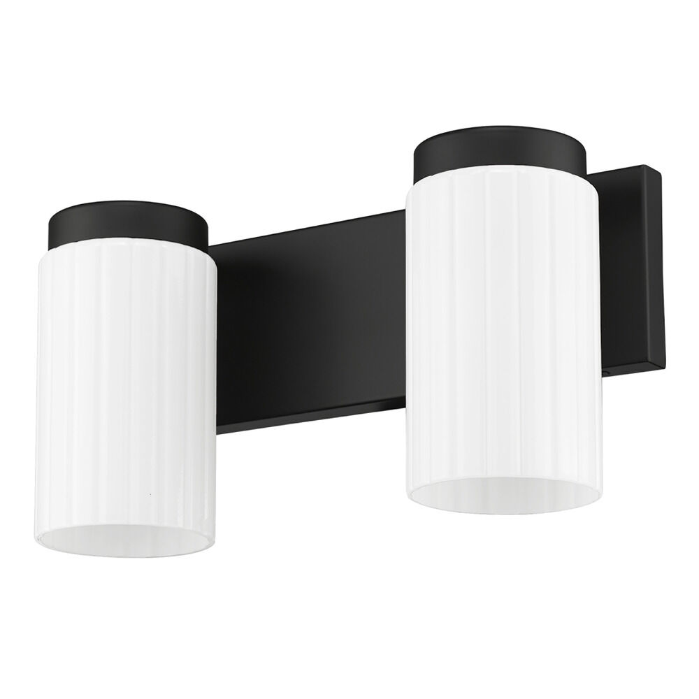 Contemporary / modern matte black 2-light bathroom light with matte,fluted matte opal glass shade