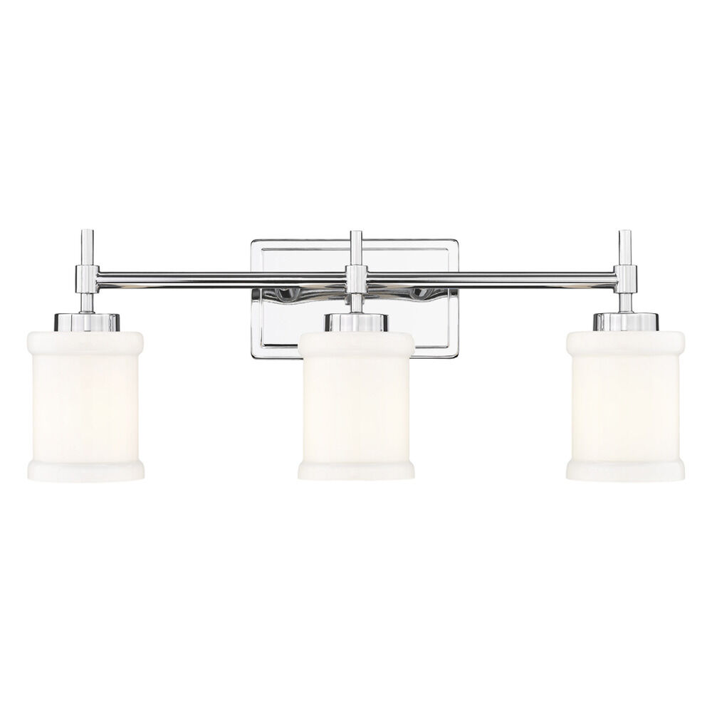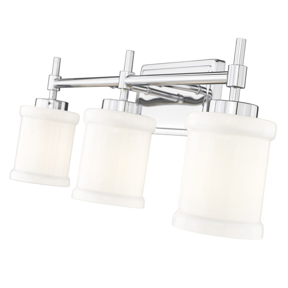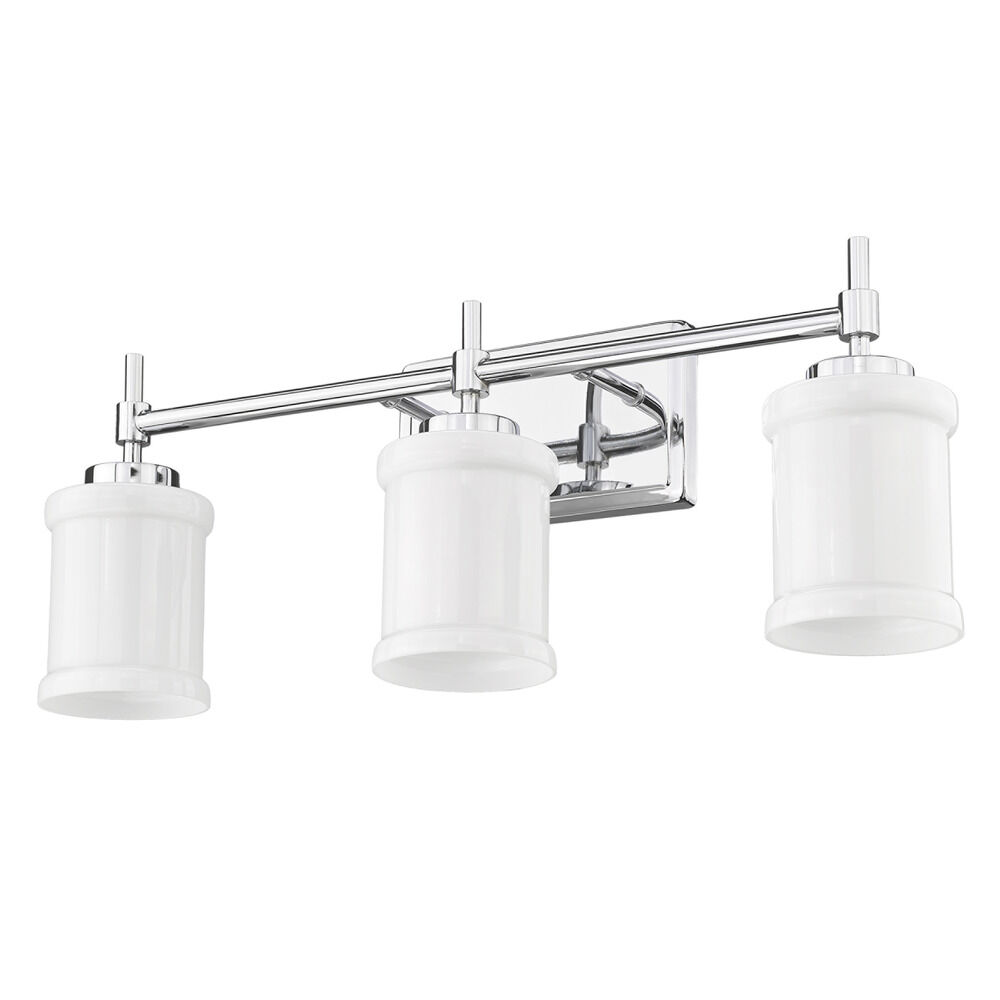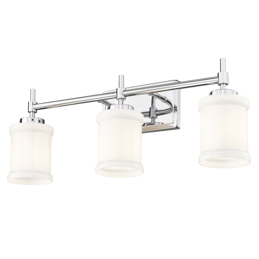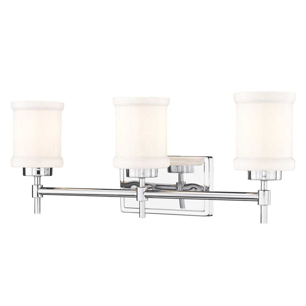 Contemporary / modern chrome 3-light bathroom light with glossy gloss opal glass shade