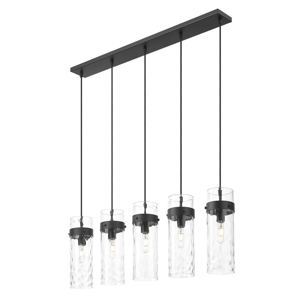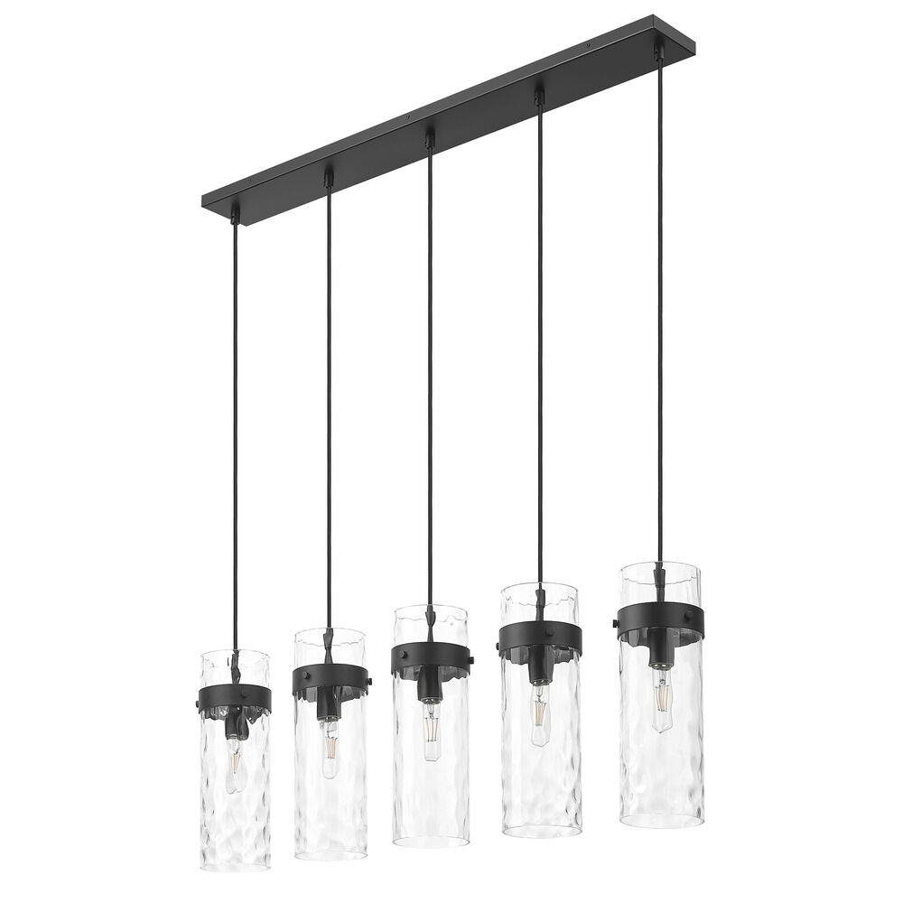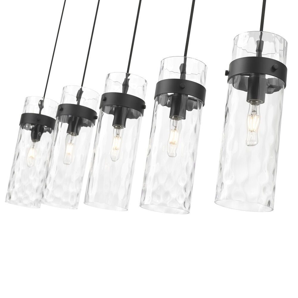 Contemporary / modern matte black 5-light pendant light with clear,water clear water glass shade