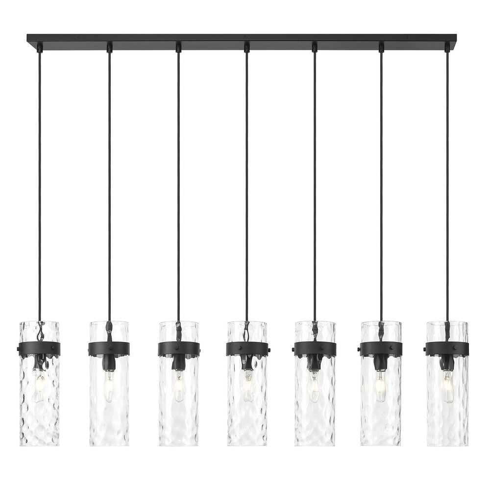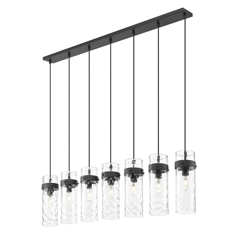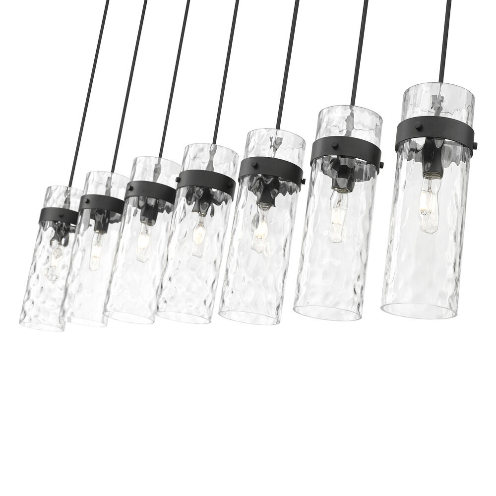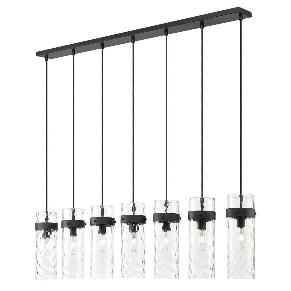 Contemporary / modern matte black 7-light pendant light with clear,water clear water glass shade
