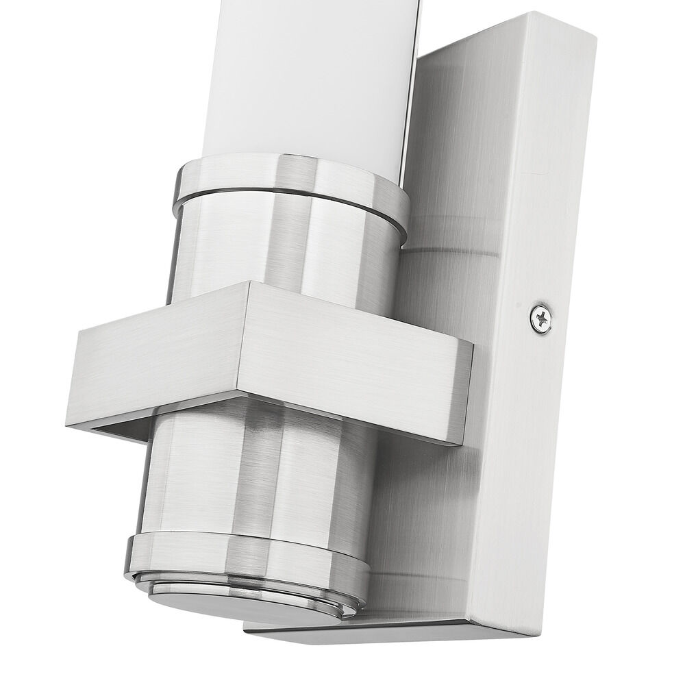 Contemporary / modern brushed nickel 1-light sconce with white opal glass shade