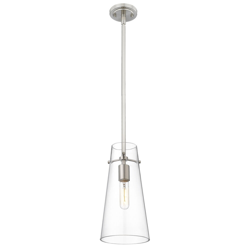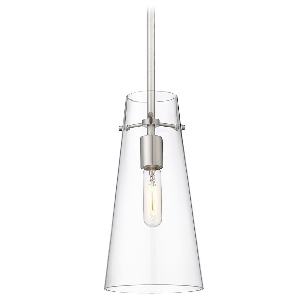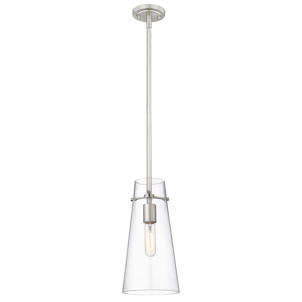 Z-Lite Kira Brushed Nickel Mini-Pendant Light with Conical ShadeManufacturer: Z-Lite Model #: 7508P-ROD-BN Z-Lite Kira Brushed Nickel Mini-Pendant Light with Conical Shade