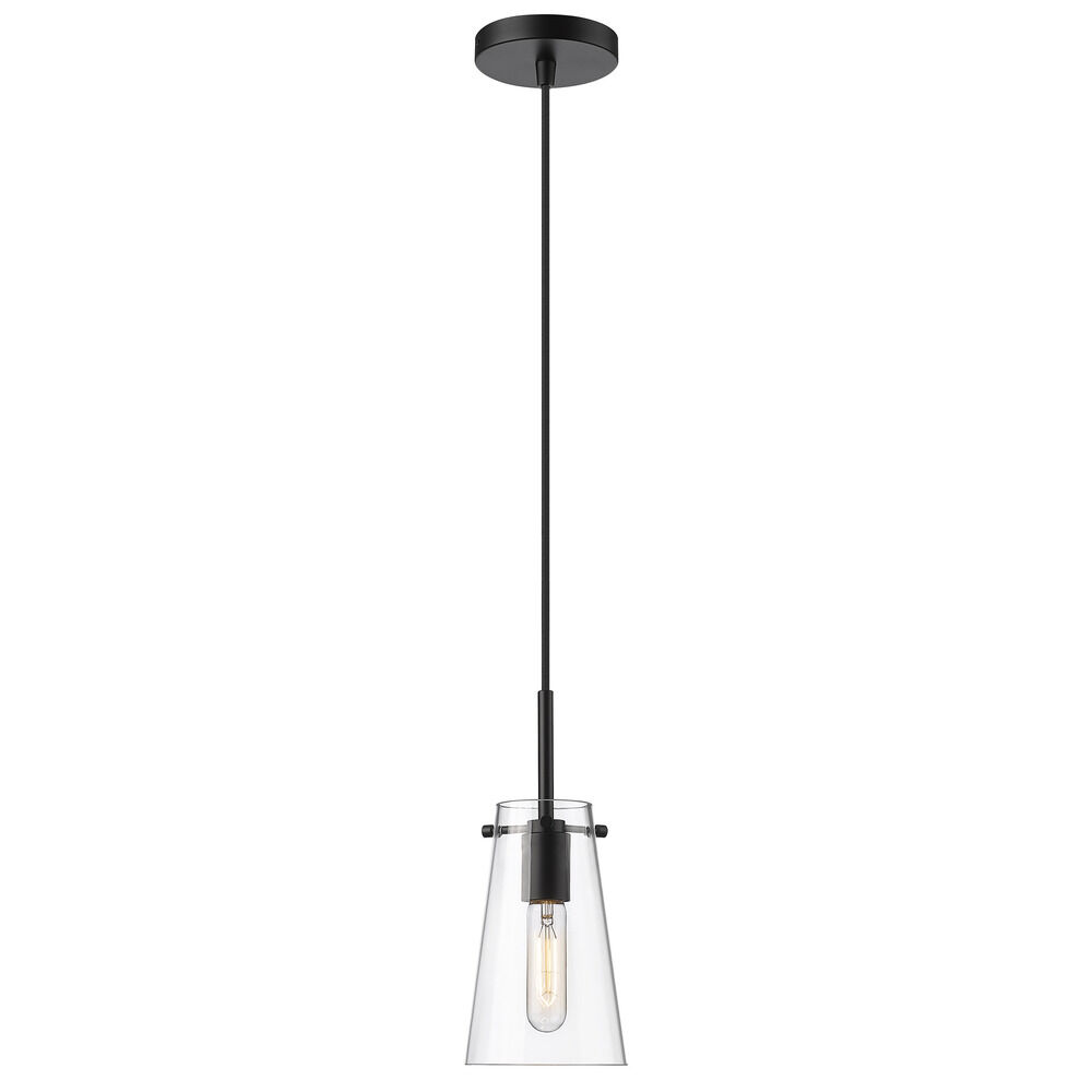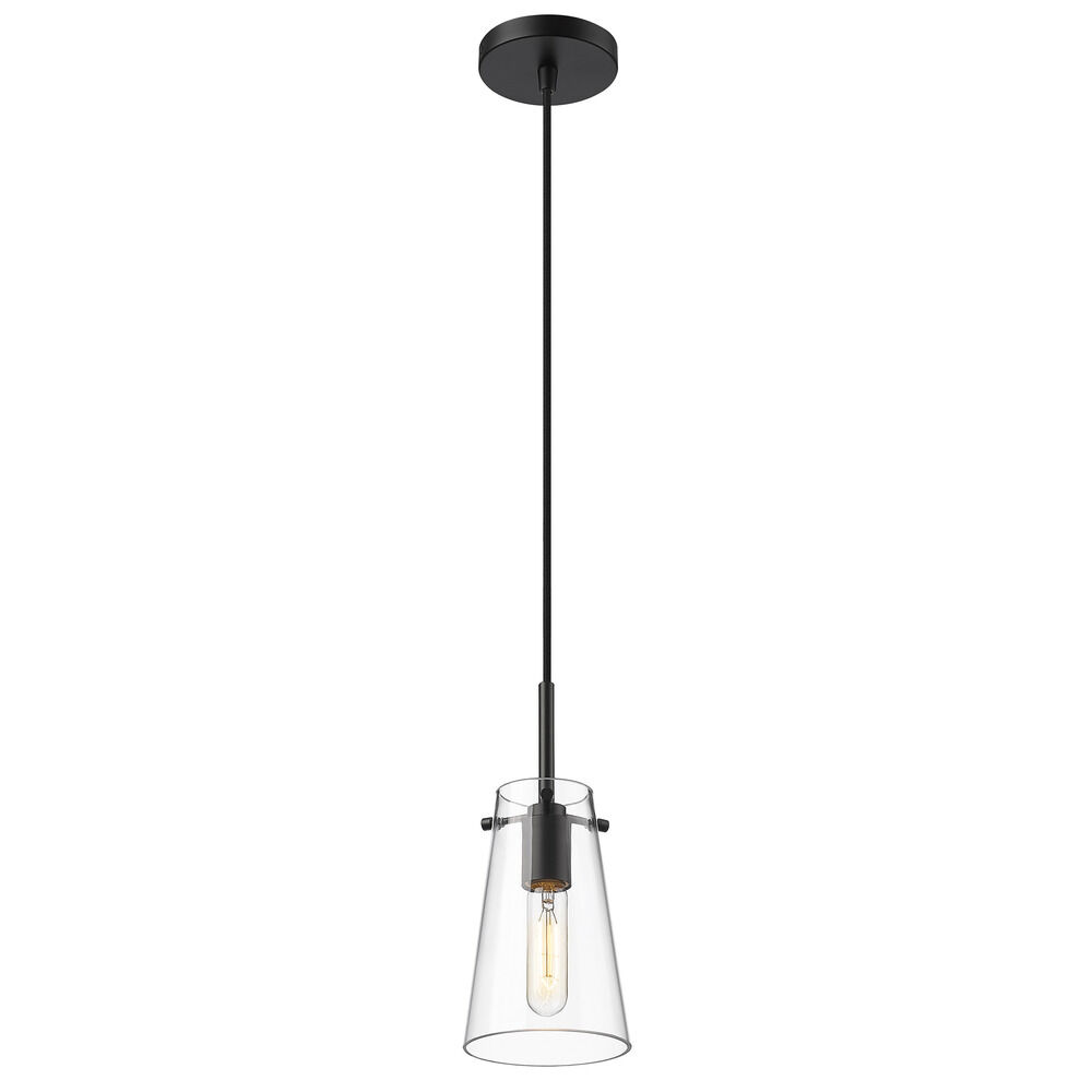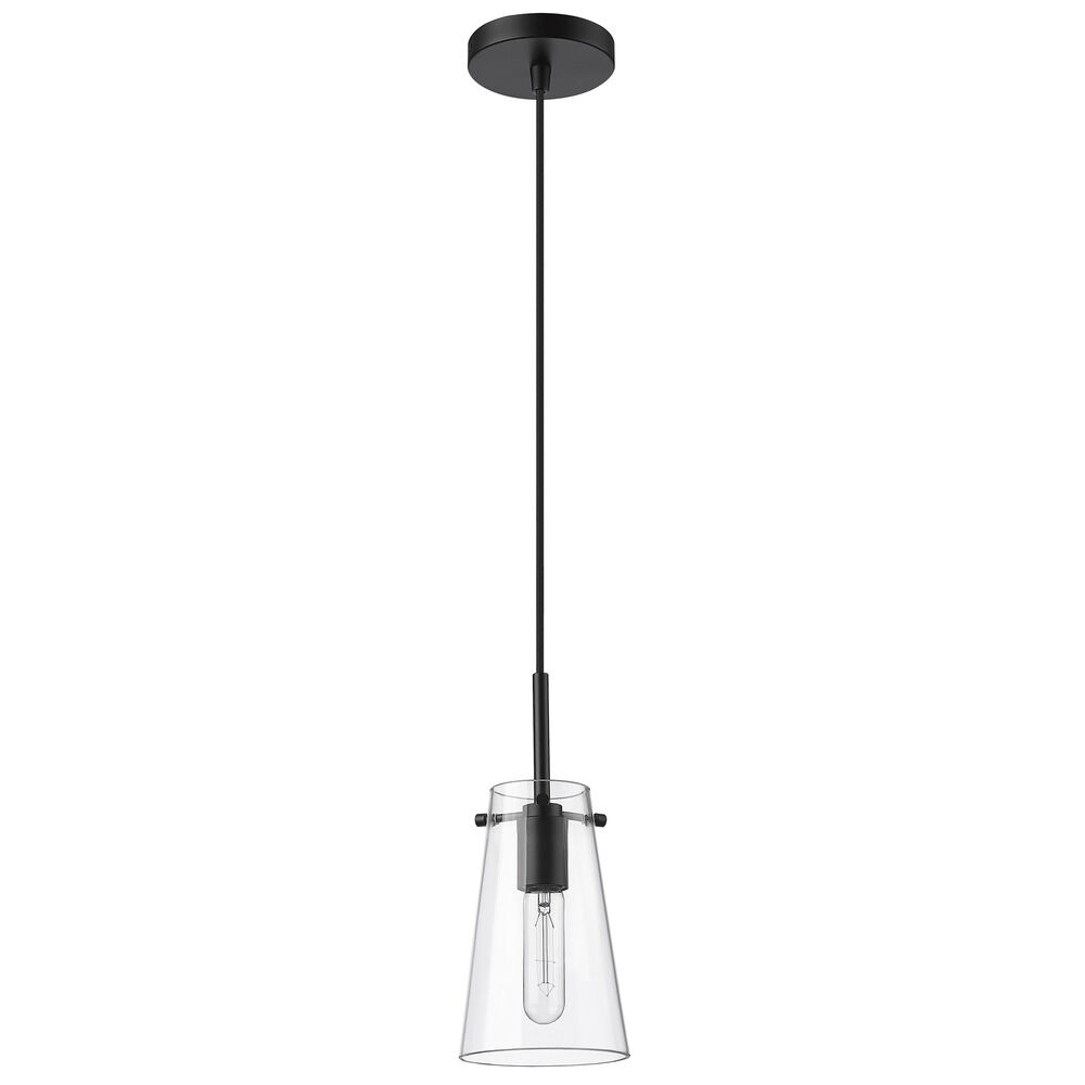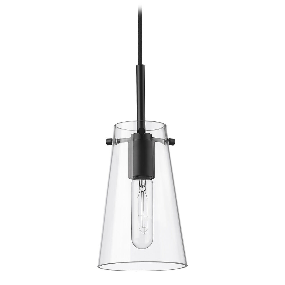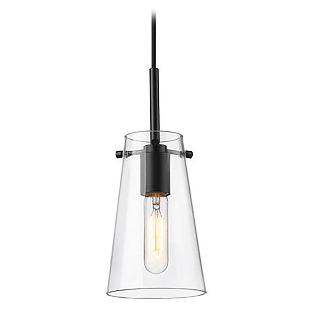 Contemporary / modern matte black 1-light mini-pendant light with clear glass shade