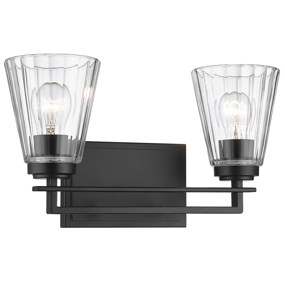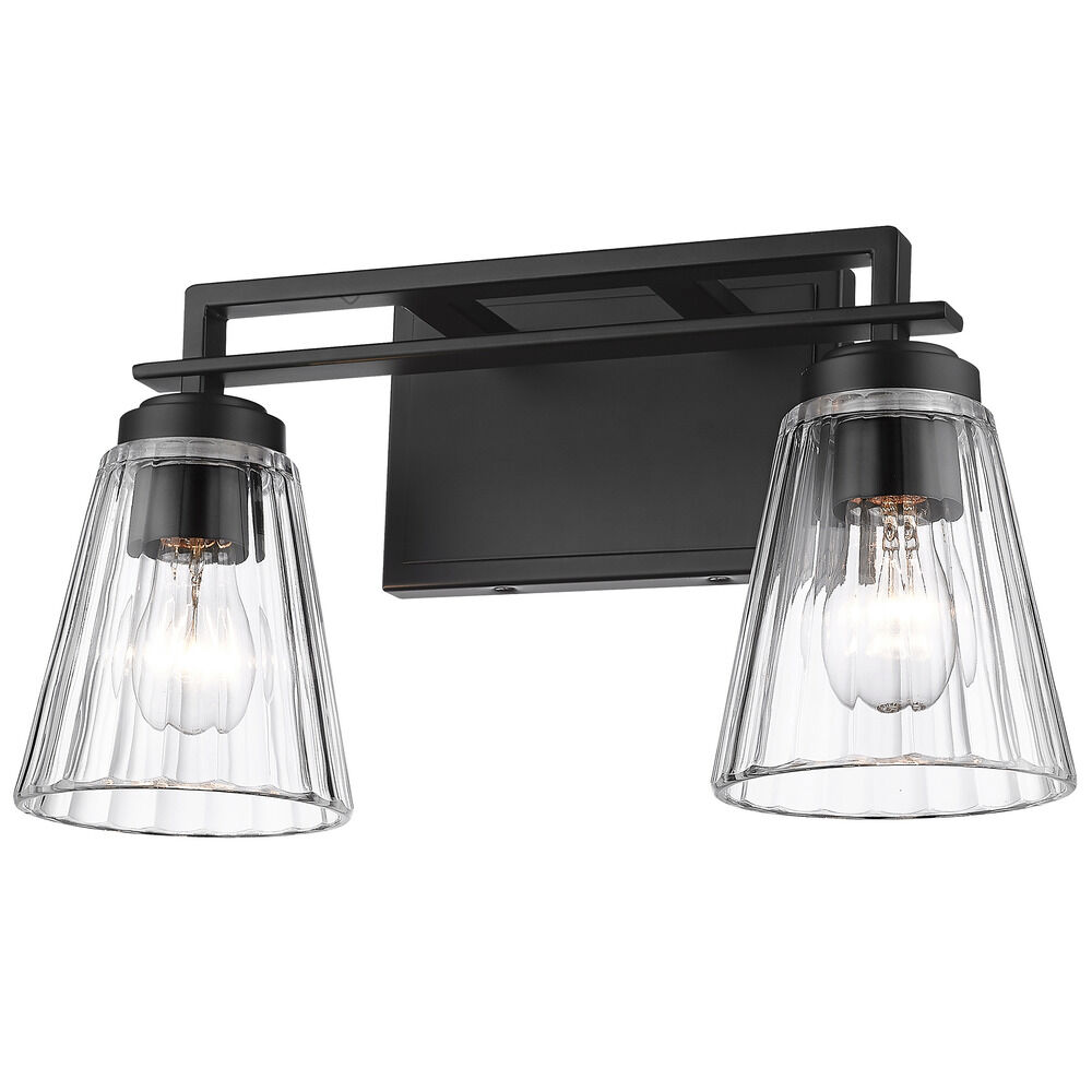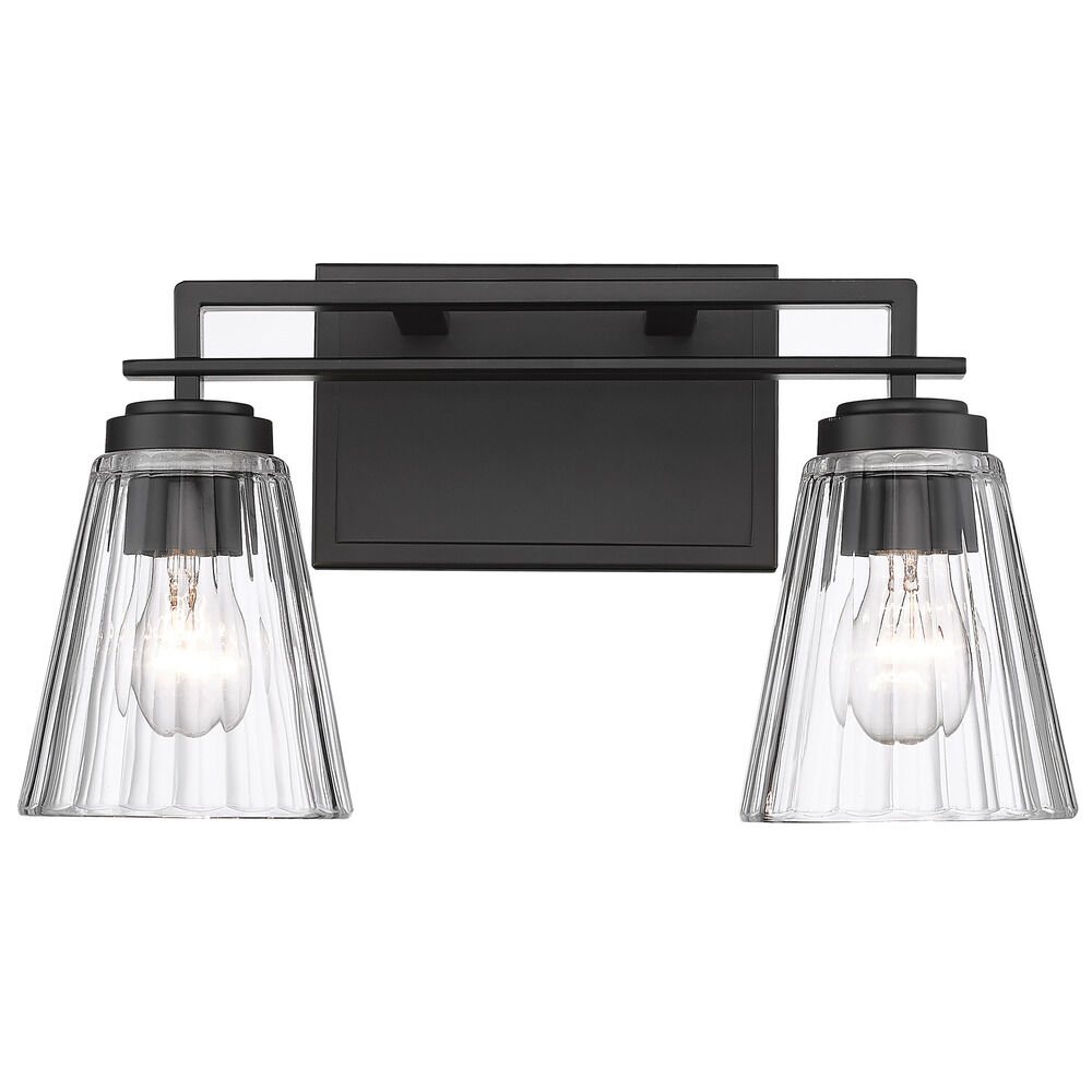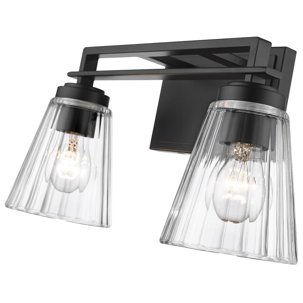 Contemporary / modern matte black 2-light bathroom light with clear,ribbed clear glass shade