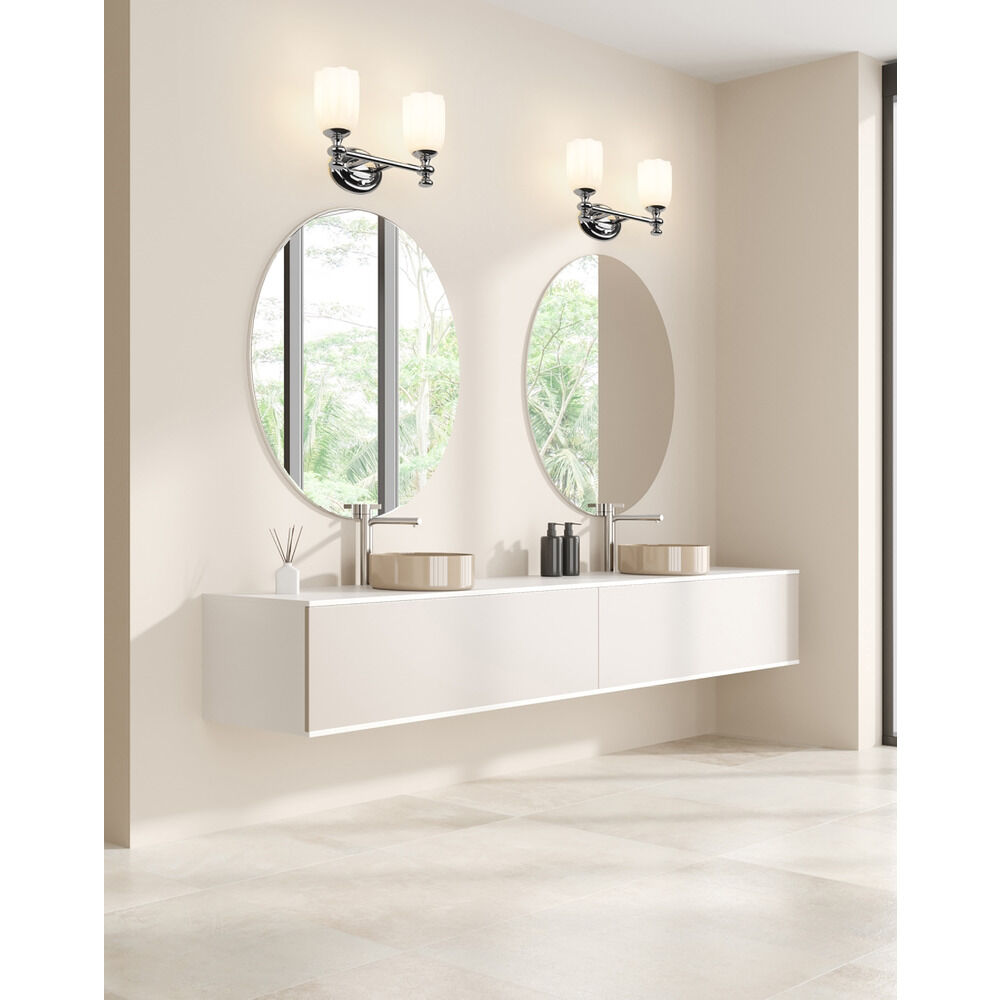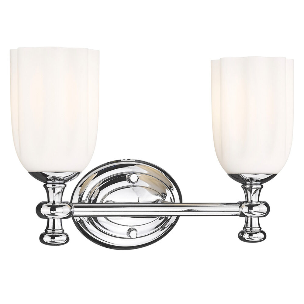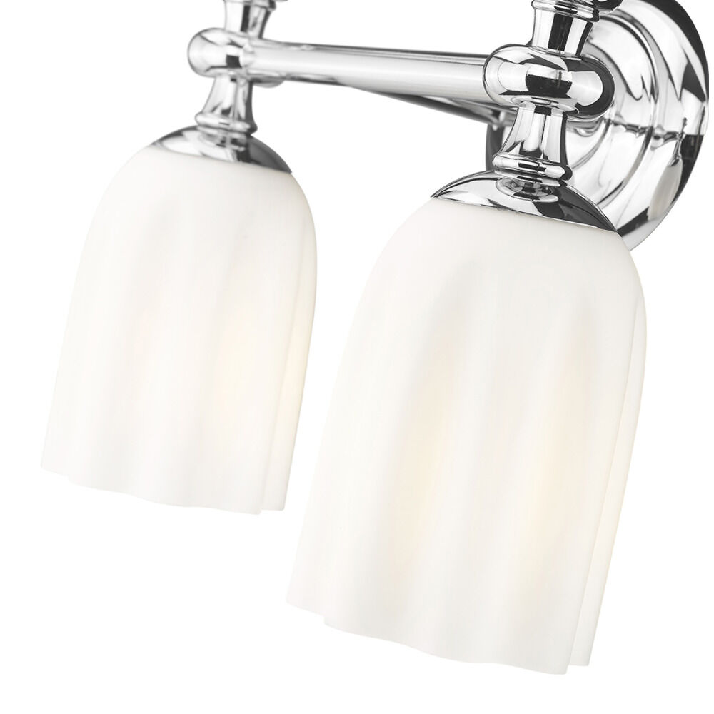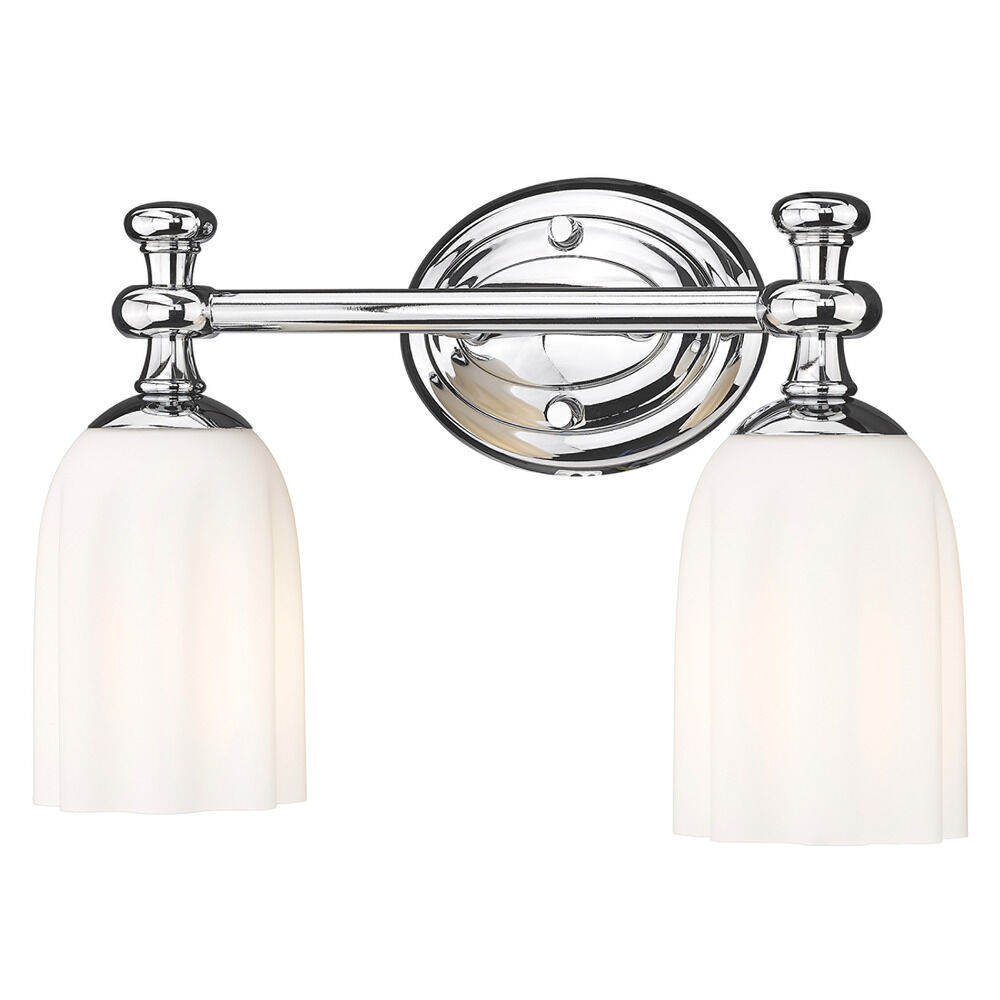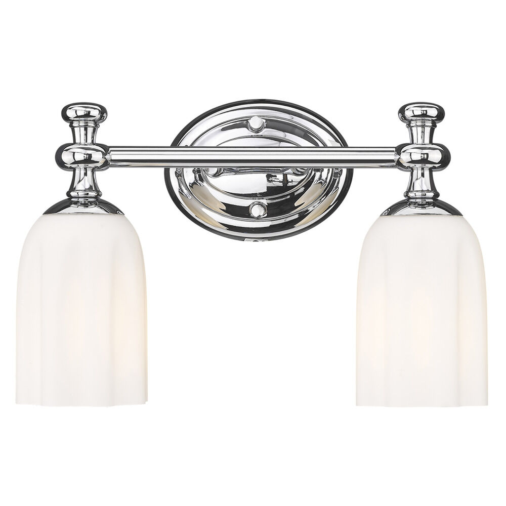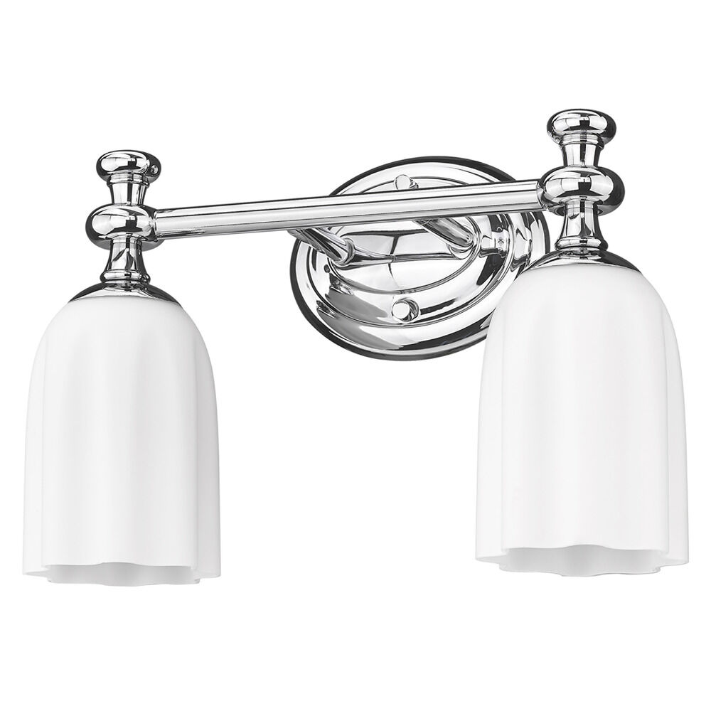 Transitional chrome 2-light bathroom light with etched,scalloped opal etched glass shade