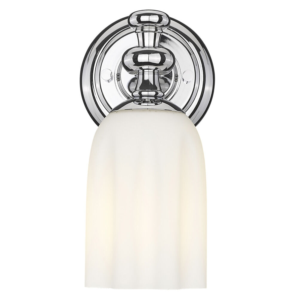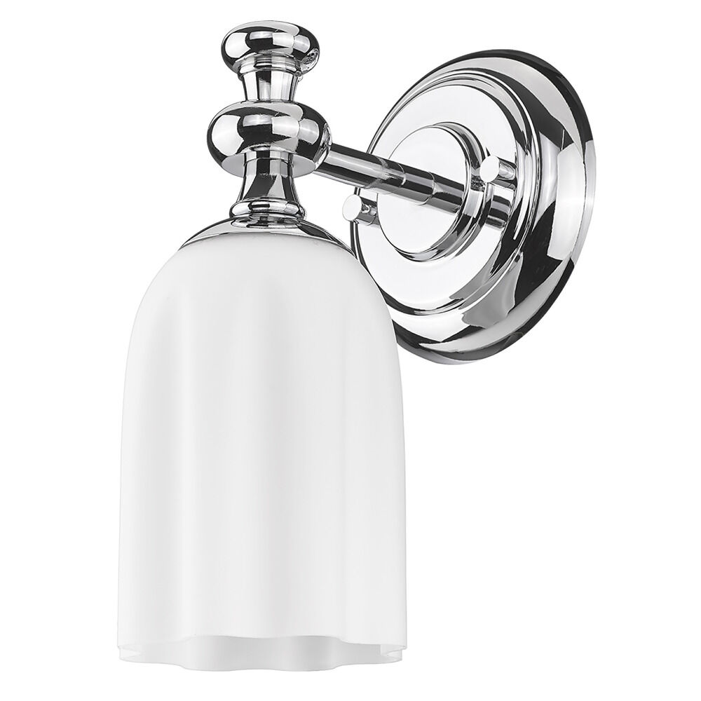 Transitional chrome 1-light sconce with etched,scalloped opal etched glass shade