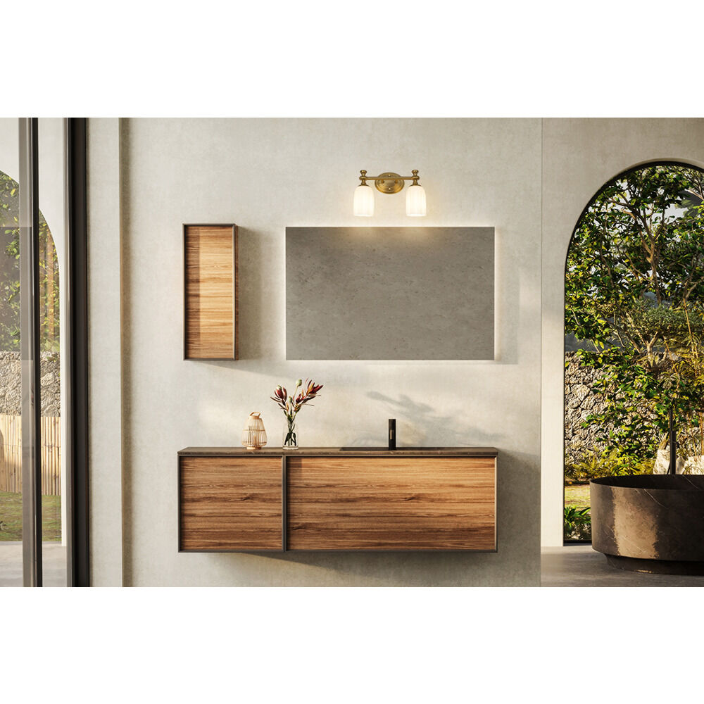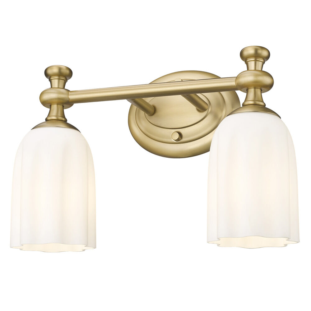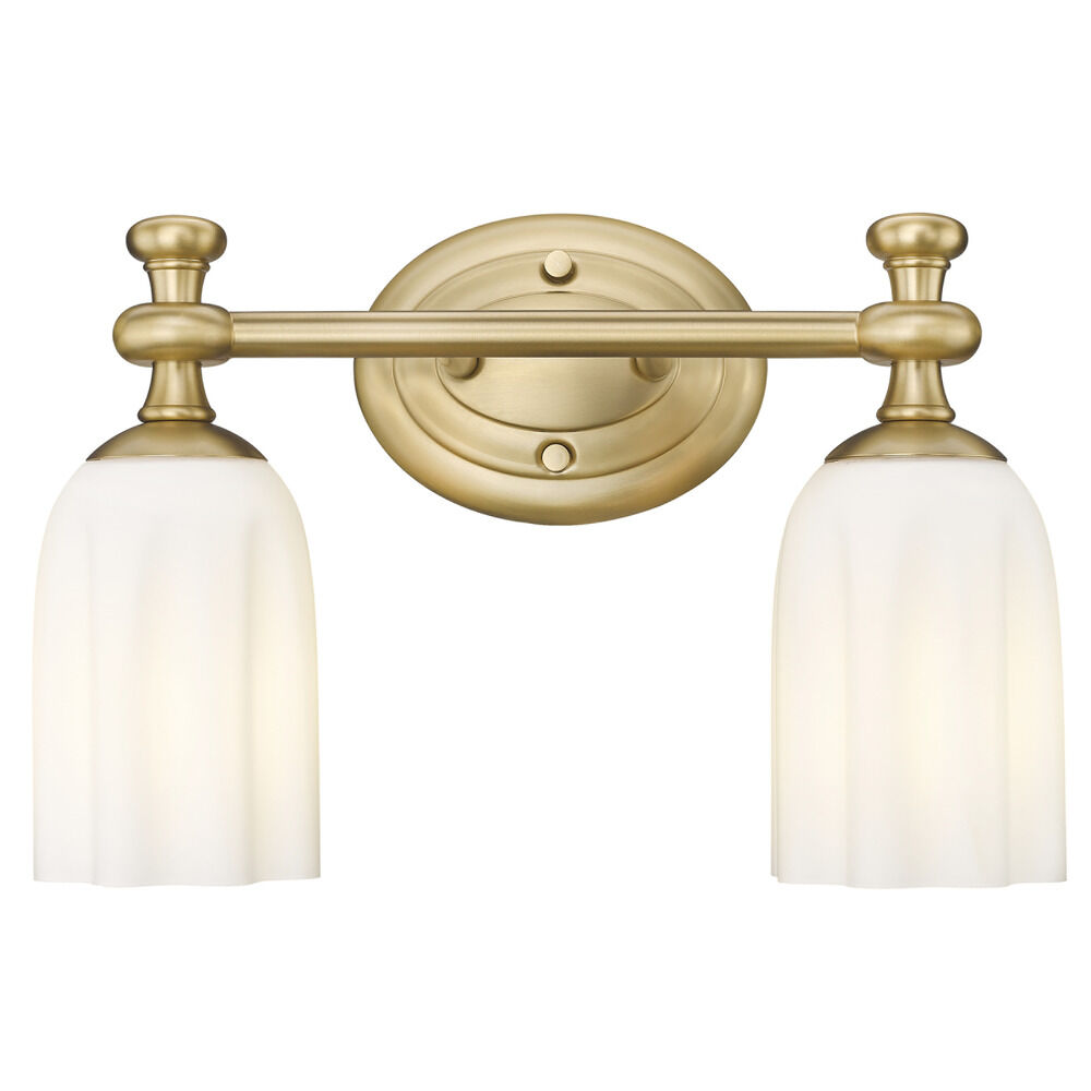 Transitional modern gold 2-light bathroom light with etched,scalloped opal etched glass shade