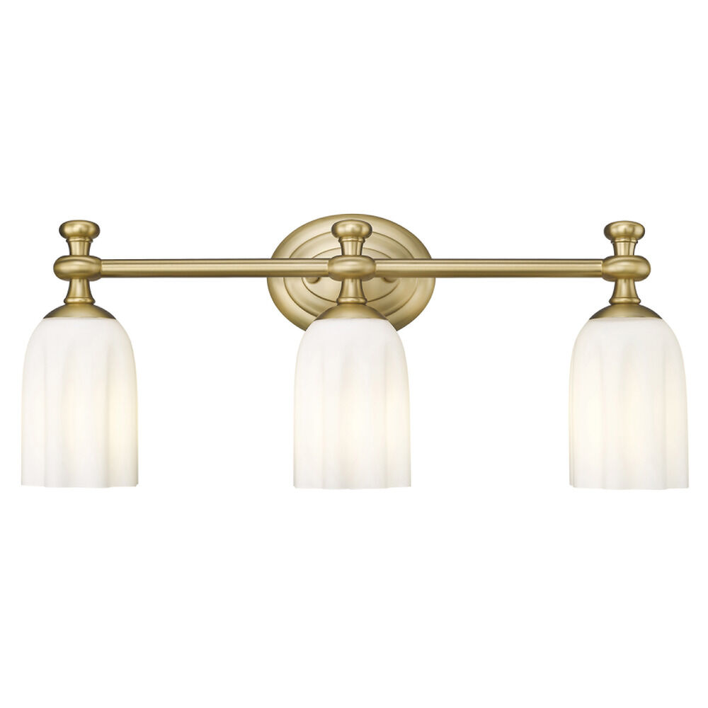Transitional modern gold 3-light bathroom light with etched,scalloped opal etched glass shade
