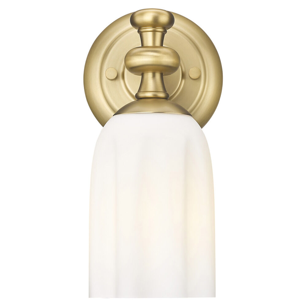 Transitional modern gold 1-light sconce with etched,scalloped opal etched glass shade