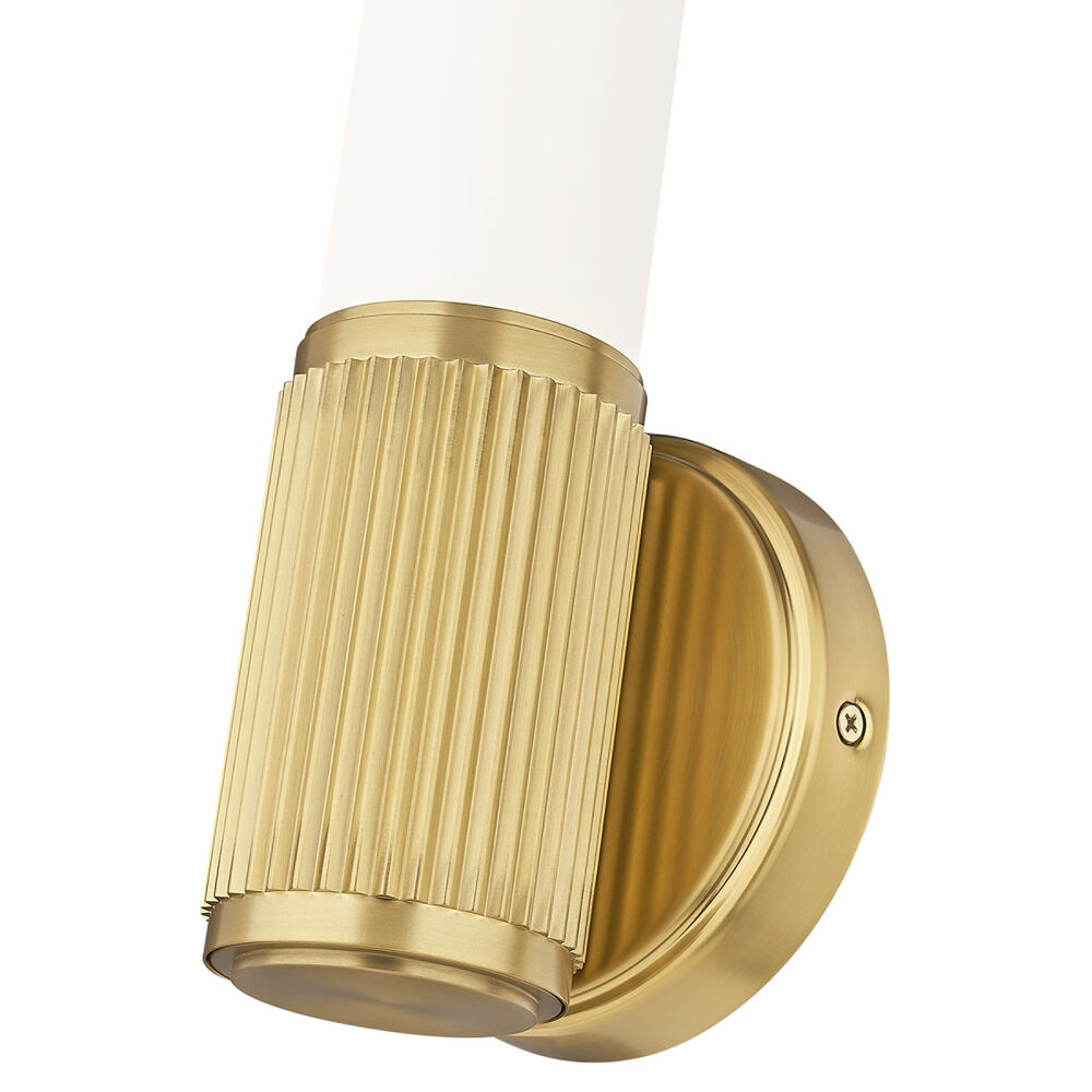 Contemporary / modern gold 1-light sconce with white opal glass shade