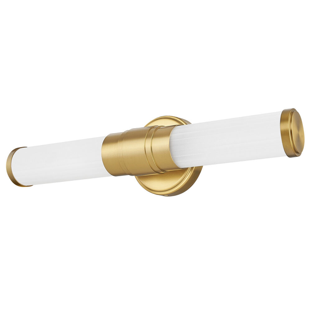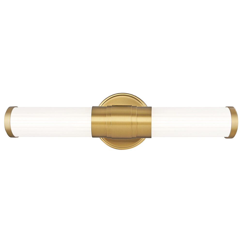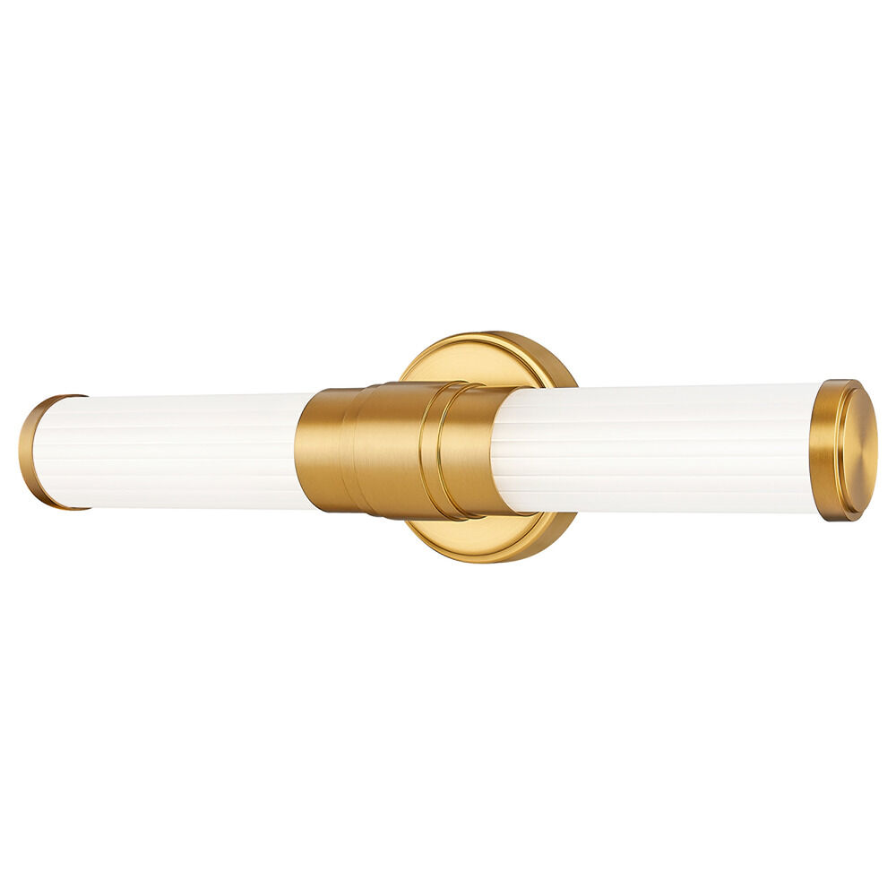 Contemporary / modern gold 1-light bathroom light with ribbed white opal glass shade