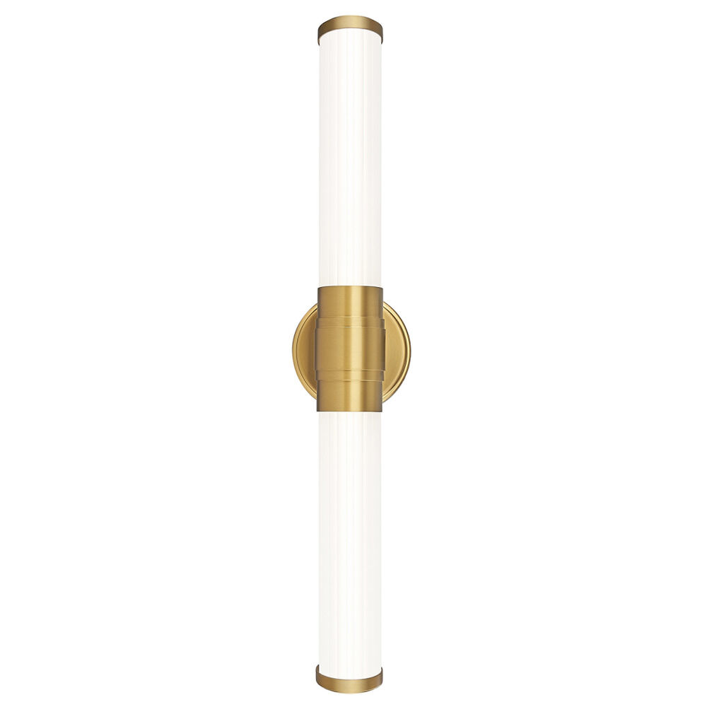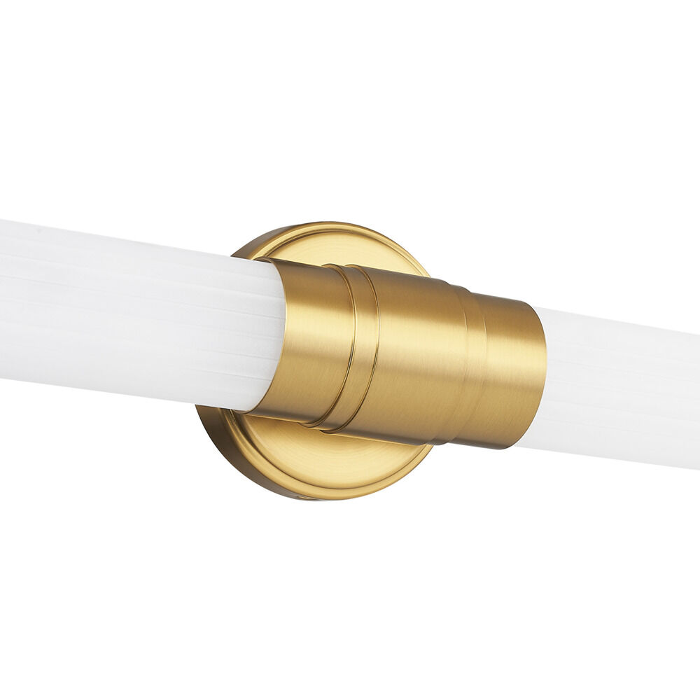 Contemporary / modern gold 1-light bathroom light with ribbed white opal glass shade